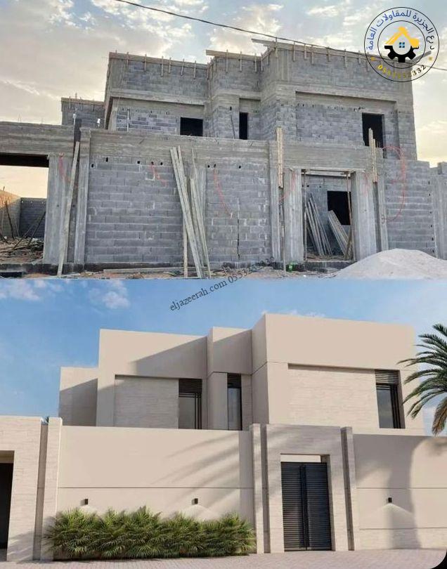 في حال كانت الواجهة تحتاج إلى لمسة جمالية جديدة، يتم إعادة الطلاء الخارجي باستخدام دهانات مقاومة للعوامل المناخية أو إعادة تكسيتها بالرخام أو الحجر حسب رغبة المالك. هذه الخطوة تضفي على المبنى مظهرًا متجددًا وتحافظ على جاذبيته لفترة أطول.